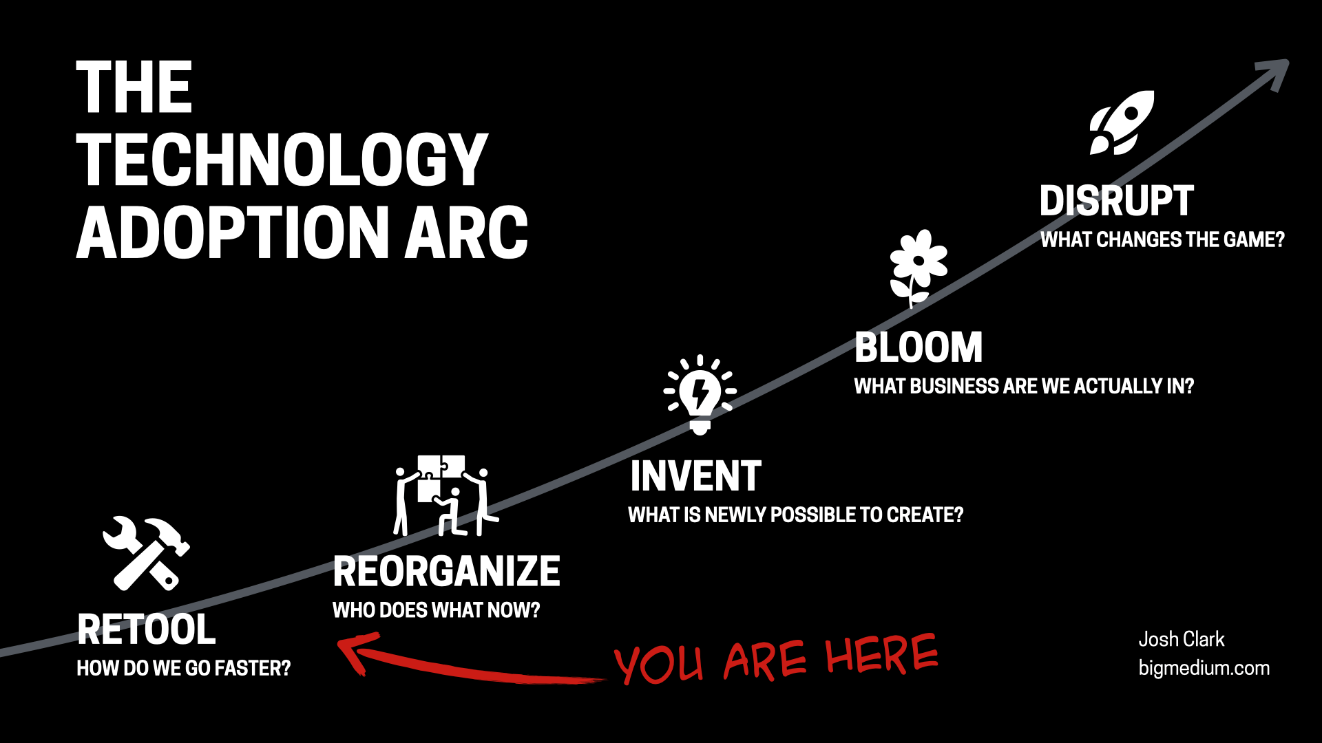 Industries and organizations adopt new technology in a progression, each stage unlocking more value than the last.
