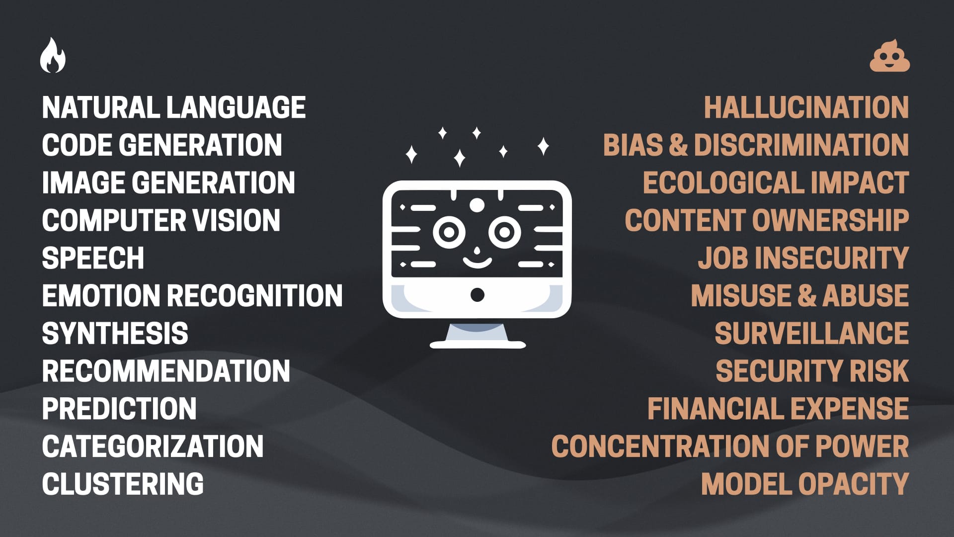 Many of the problems in that last slide are not inherent to the technology. It doesn’t have to be an energy suck. Look at DeepSeek. It doesn’t have to be expensive. Business models don’t have to exploit content creators.