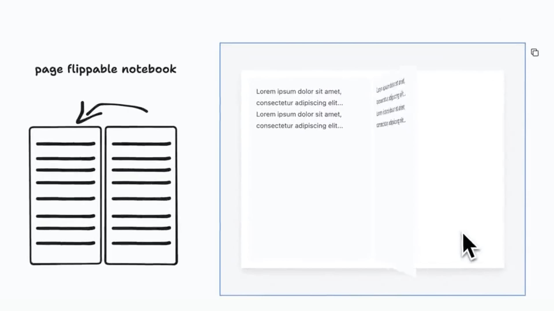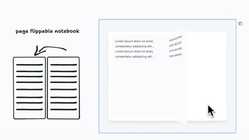 Let’s look at another one. So here we have a sketch of a notebook on the left. The sketch has some instructions to make a page flippable notebook. And so Make Real has generated this prototype on the right. Let’s try it. It works! Very pretty.