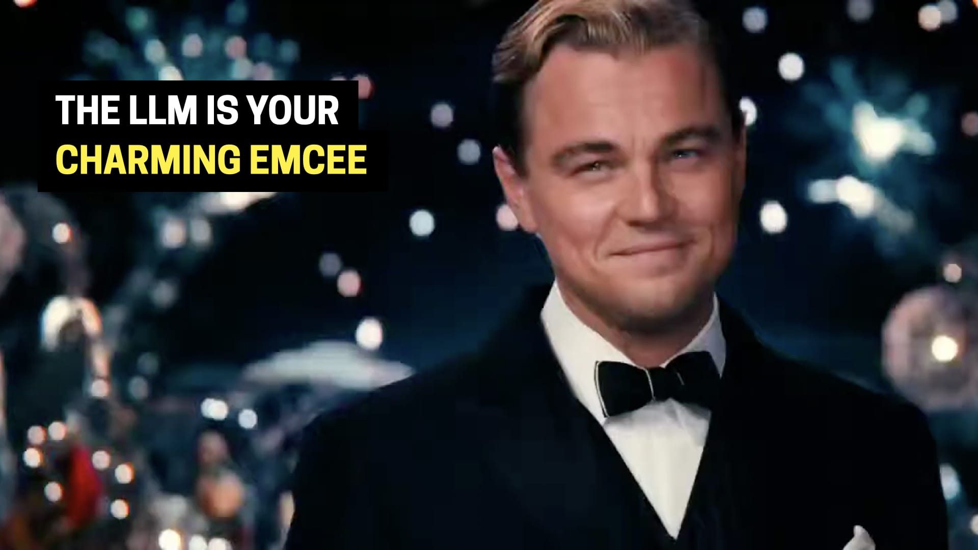 Here’s what we suggest. We suggest using the LLM as the face of your system. They’re remarkably good interfaces. They can understand and express language in many forms. They’re a very friendly host that can welcome you and understand your intent and reply in a way that feels natural.