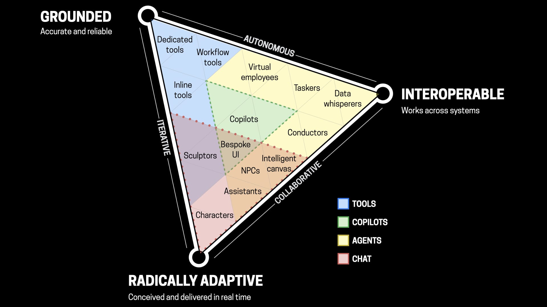 And then at the bottom, radically adaptive, which is really the new thing. Grounded and interoperable have been part of computing for forever. The radically adaptive part is what happens when you start to add some intelligence.